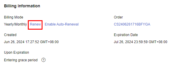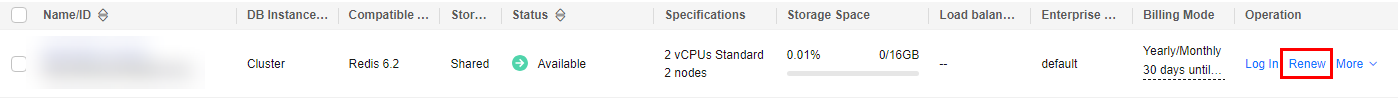 Alternatively, click the instance name to go to the Basic Information page. In the Billing Information area, click Renew next to the Billing Mode field.