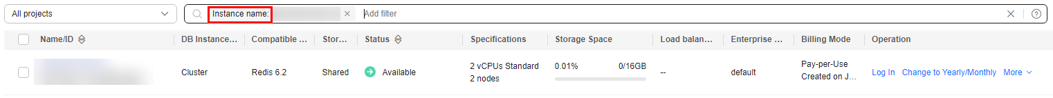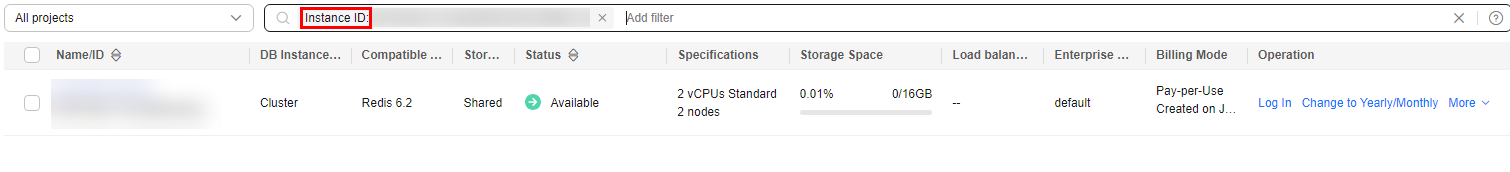 - Select the region where the resource is located. Select Instance ID, enter the resource ID copied from 3, and click