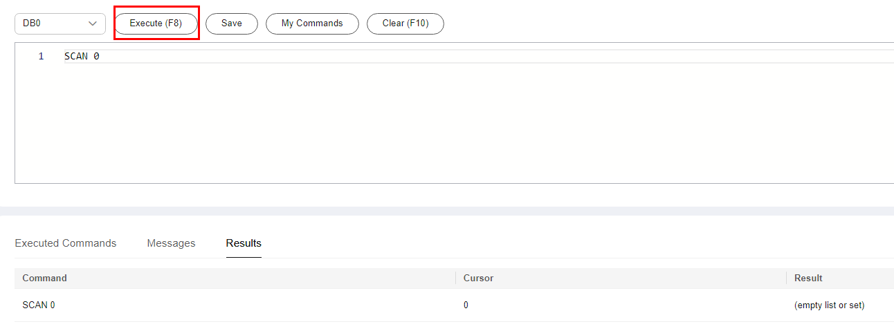 After a command is executed, you can view the execution result on the Results page.