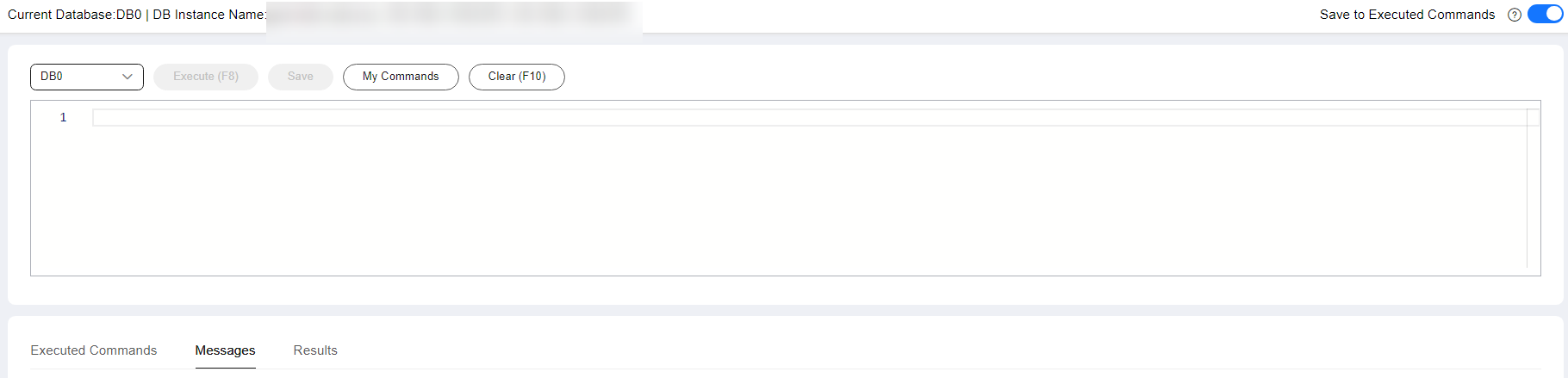 next to Save Executed SQL Statements in the upper right corner to disable this function. - Execute a command.