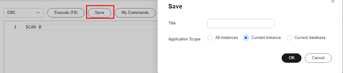You can save a command to all instances, the current instance, or the current database. Then you can view details in My Commands.