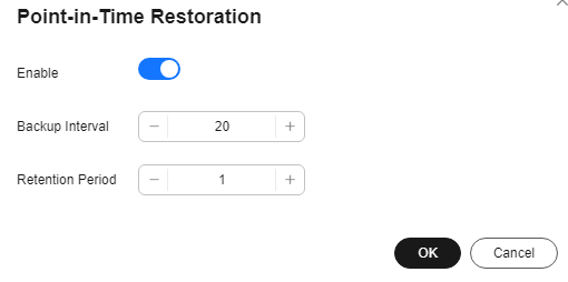 - You can toggle on or off Enable to configure point-in-time restoration.