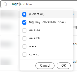 - Select the tag to be queried and click OK to query information about instances associated with the tag.