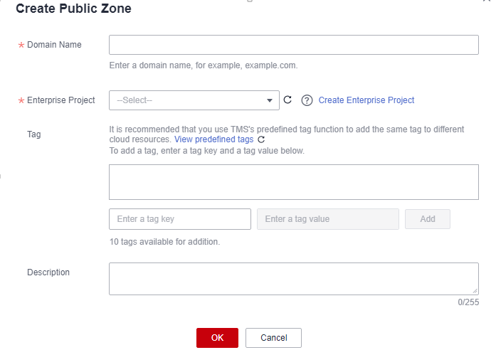 - If you manage domain names by enterprise project, select an existing enterprise project.