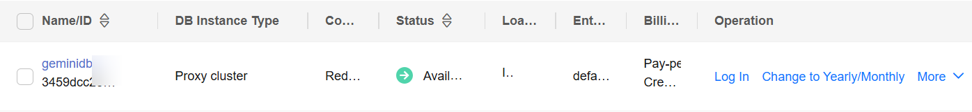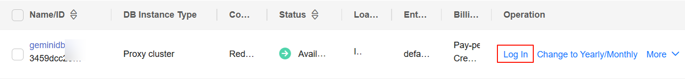 - In the instance list, locate the target instance and click Log In in the Operation column.