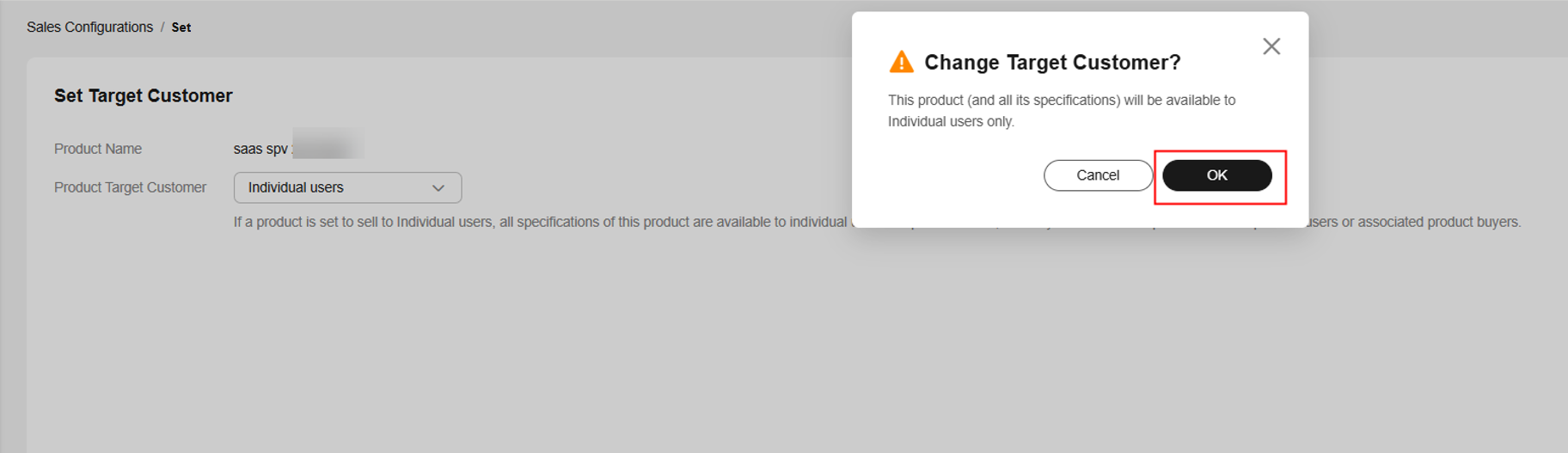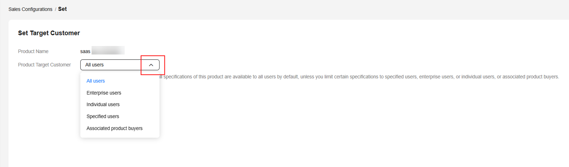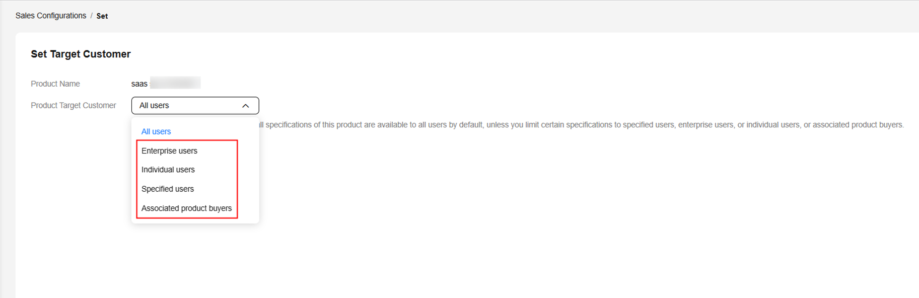 - In the navigation pane, choose Product Management > Sales Configurations. On the displayed page, click the Target Customers tab.