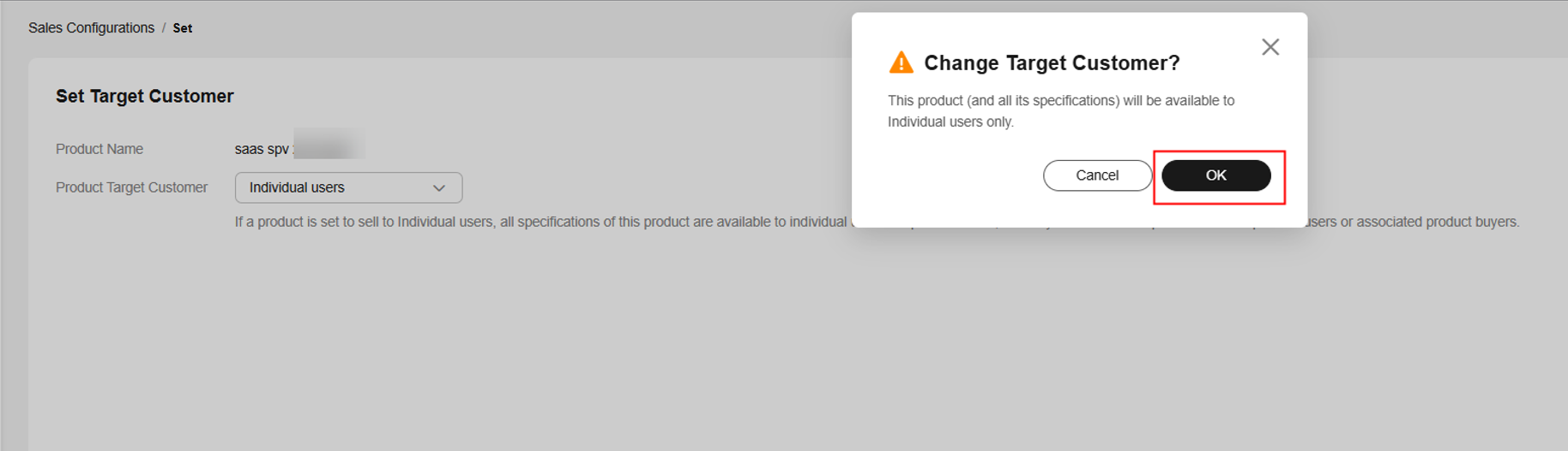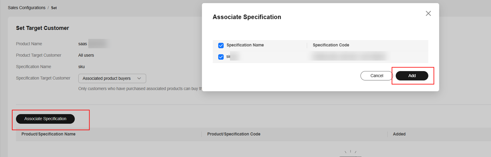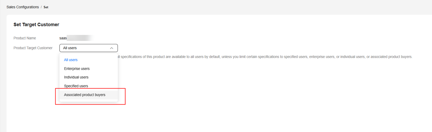 - If a product is limited to associated product buyers, all specifications of this product are limited to only those users. You cannot change the target customers of the specifications.