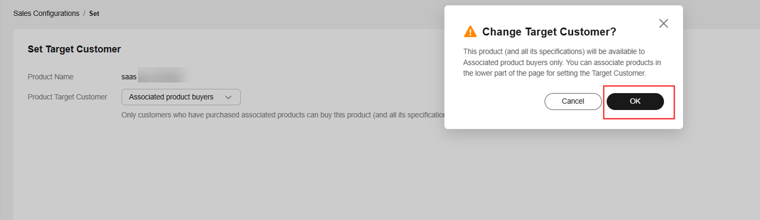 to expand the drop-down list, set Product Target Customer to Associated product buyers, and click OK.