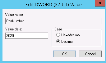- Change the value in Value data to the new port number, which is 2020 in this example.