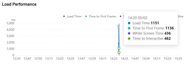 - Move the cursor to the load performance graph. The detailed load performance data is displayed.