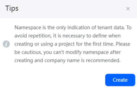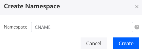 In the displayed dialog box, click the create button, enter a namespace (for example, CNAME), and click Create.