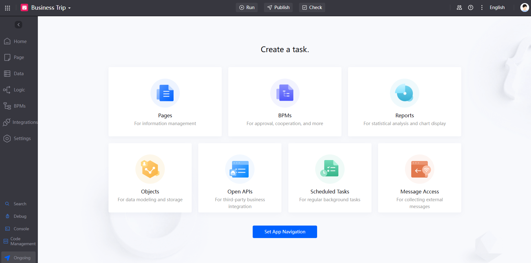 Using templates allows you to quickly create applications. The no-code workbench provides various templates to reduce application development costs and improve development efficiency. If your service scenario is similar to that of an application template, you can create an application from the template.