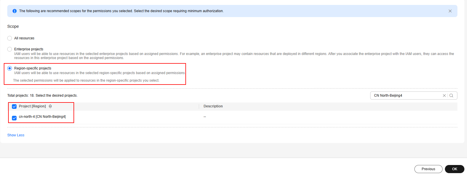 Figure 3 Assigning permissions to the user group to which an IAM user belongs (Setting the min. authorization scope)