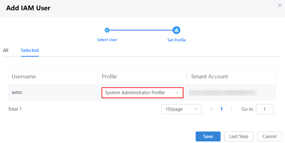 - Select System Administrator Profile to add the system administrator permission to the IAM user.