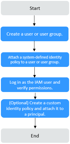 - Attach a system-defined identity policy (BILLINGOperatorPolicy) to the user or user group.