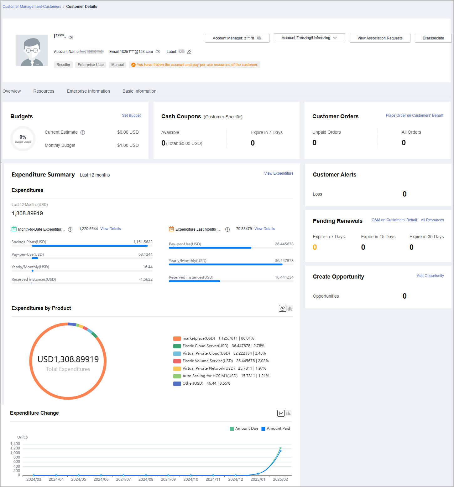 - You can click Assign Account Manager to assign an account manager for the customer. If you need to change the account manager for a customer, you can click Account Manager: ***.