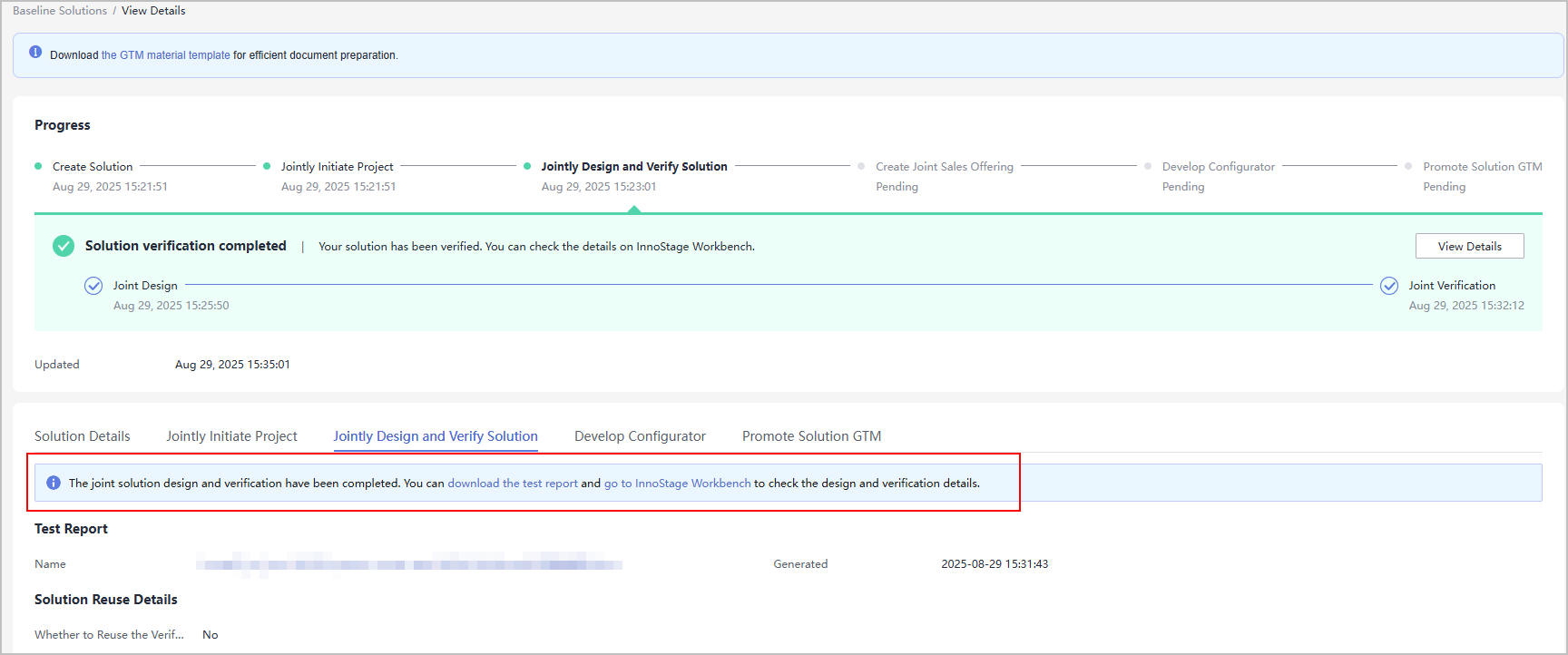 3. You can also follow the solution progress on Partner Center when performing joint solution design and verification on InnoStage Workbench.