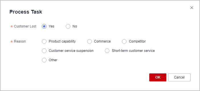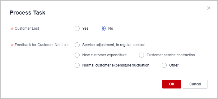 • Click Process Task in the Operation column for a target alert to handle this alert.