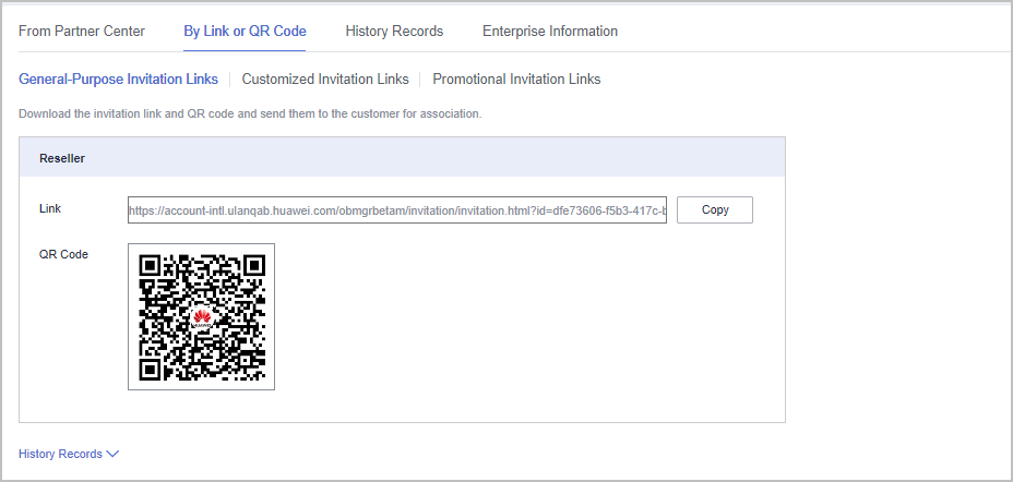 - After a partner sends an association invitation to a customer, the customer can click the invitation link to associate with the partner. For details, see Associating with a Partner Using an Invitation Link.