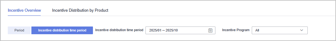 - Incentive distribution time period: Select an incentive distribution period and an incentive program. Note: The incentive distribution period cannot cross years.