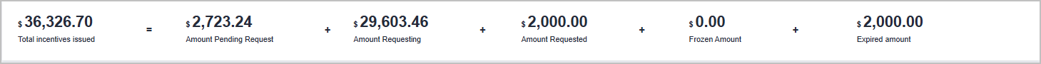 Total Incentives Issued = Frozen Amount + Amount Pending Request + Amount Requesting + Amount Requested + Expired Amount