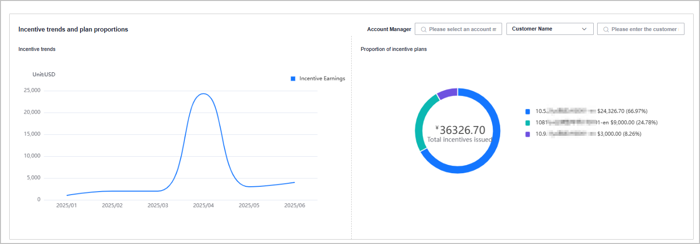 You can view the total issued incentives and their composition, incentive trend, incentives by incentive program, and incentive earnings based on the reconciliation period and incentive distribution period.