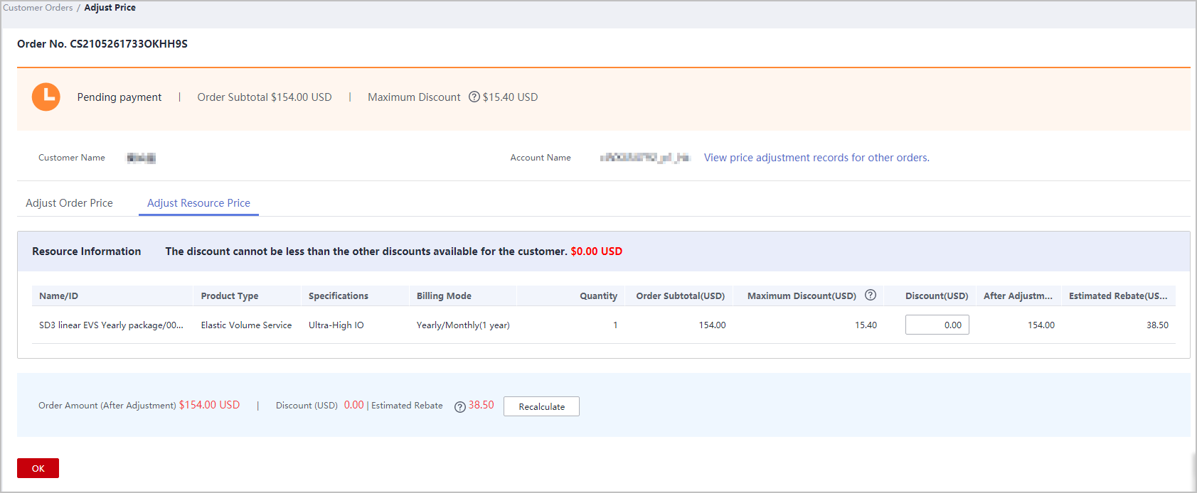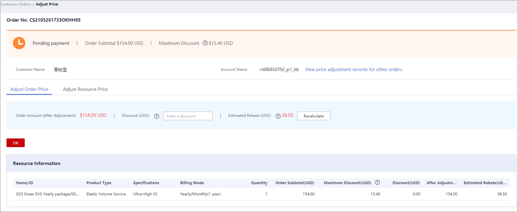 • The applicable scope of price adjustment for customer orders is the same as that of discounts granted by partners. For details, see What Is the Applicable Scope of Discounts Granted by Partners?