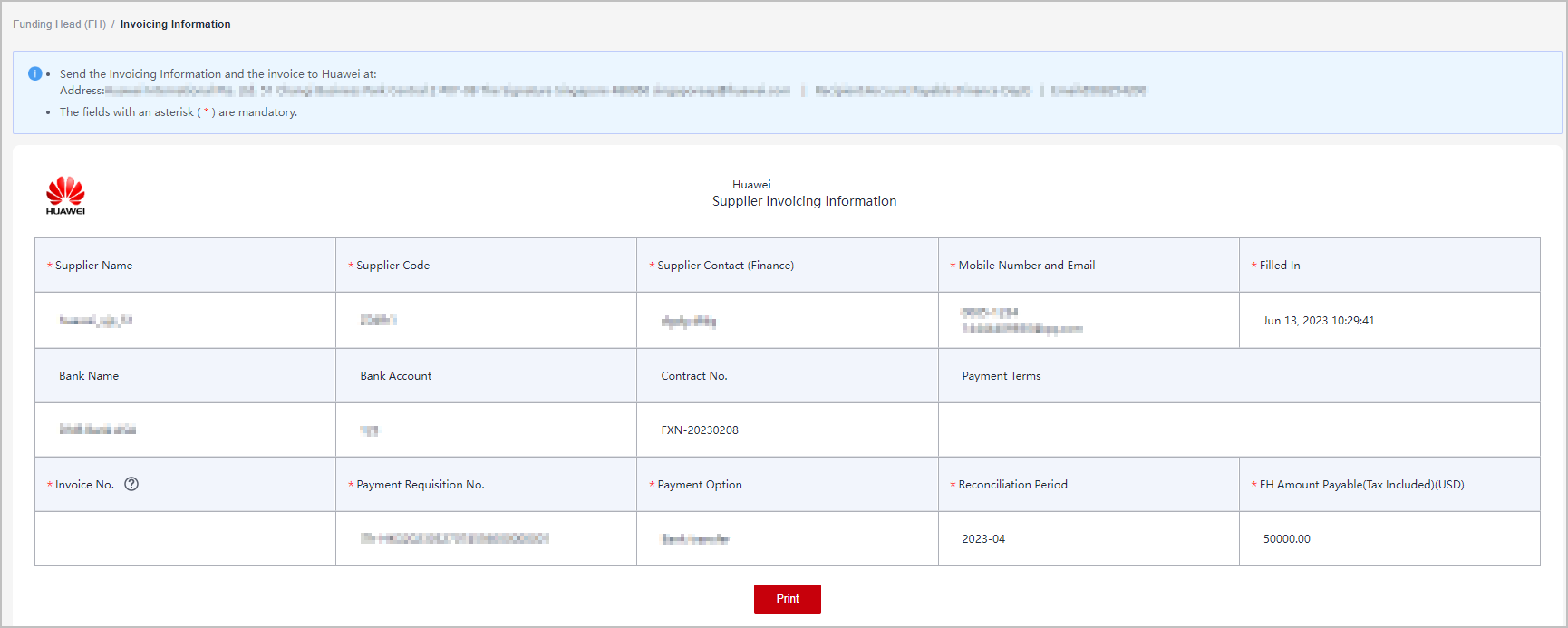 After the payment request is approved, you need to issue an invoice based on the invoicing information provided and mail the invoice to Huawei.
