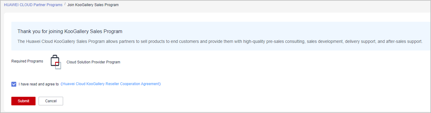 - Choose Partner Programs > Huawei Cloud Partner Programs in the menu on the top.