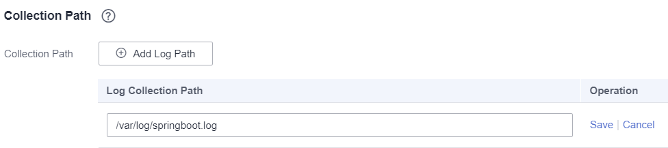 - Enter the path of the logs to be collected in Log Collection Path. For example: /var/log/springboot.log