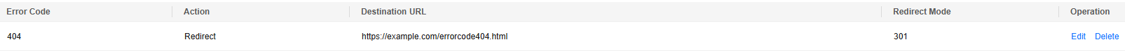 Redirect: CDN redirects requests with the specified error code returned to the destination URL. Once this rule runs, CDN will run any other matched rules.
