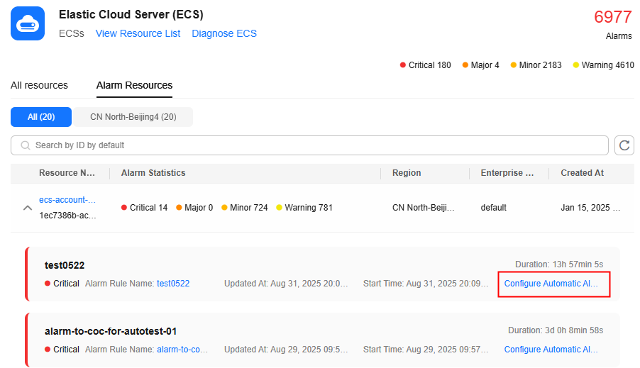 Figure 6 Viewing an alarm rule - Locate the alarm to be checked and click Automatic Alarm Handling.