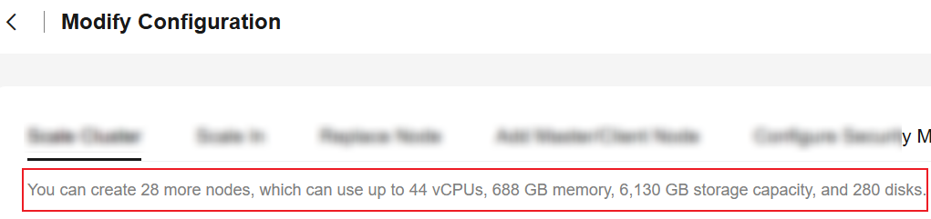- Your CSS resource quotas are sufficient for the capacity expansion you are about to perform. You can check available resources on the Modify Configuration page.