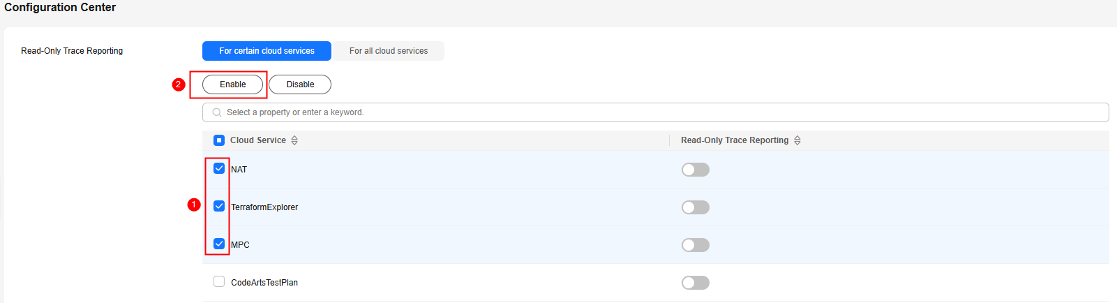 - Select For certain cloud services for Read-Only Trace Reporting.
