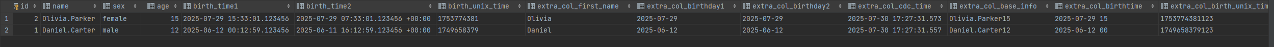 #If the source field type is not timestamp, the source time zone is UTC by default. In this example, UTC is configured for the destination, and the time zone of the source is the same as that of the destination.