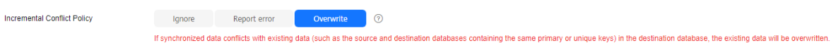 - Ignore: The system will ignore the conflicting data in the source database and continue the subsequent synchronization process. If you select Ignore, data in the source database may be inconsistent with that in the destination database.