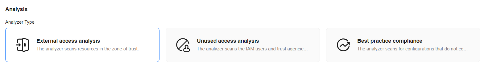 - On the Create Analyzer page, select External access analysis for Analyzer Type in the Analysis area.