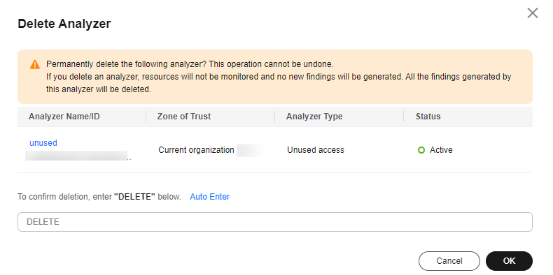 Deleting an Access Analyzer