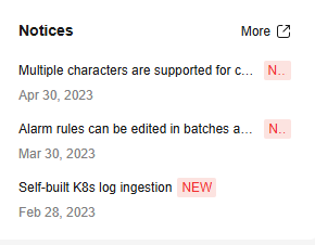 - ELB Log Center: Elastic Load Balance (ELB) logs can be ingested to LTS and displayed in the ELB dashboard templates.