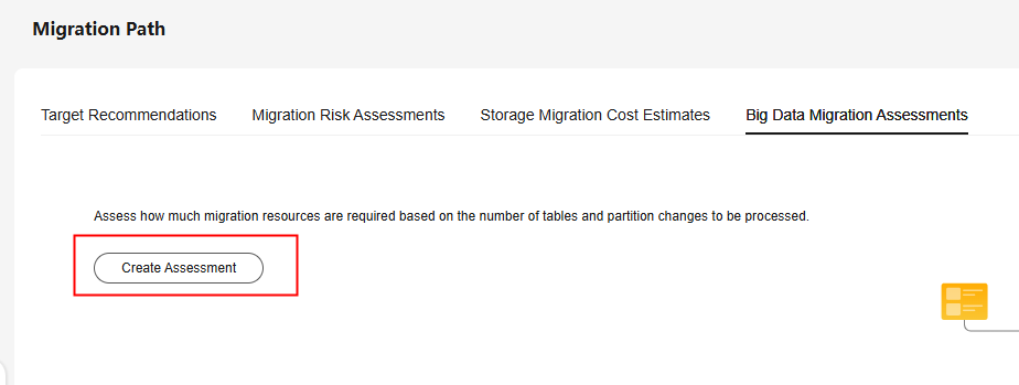 - Click the Big Data Migration Assessments tab and click Create Assessment.
