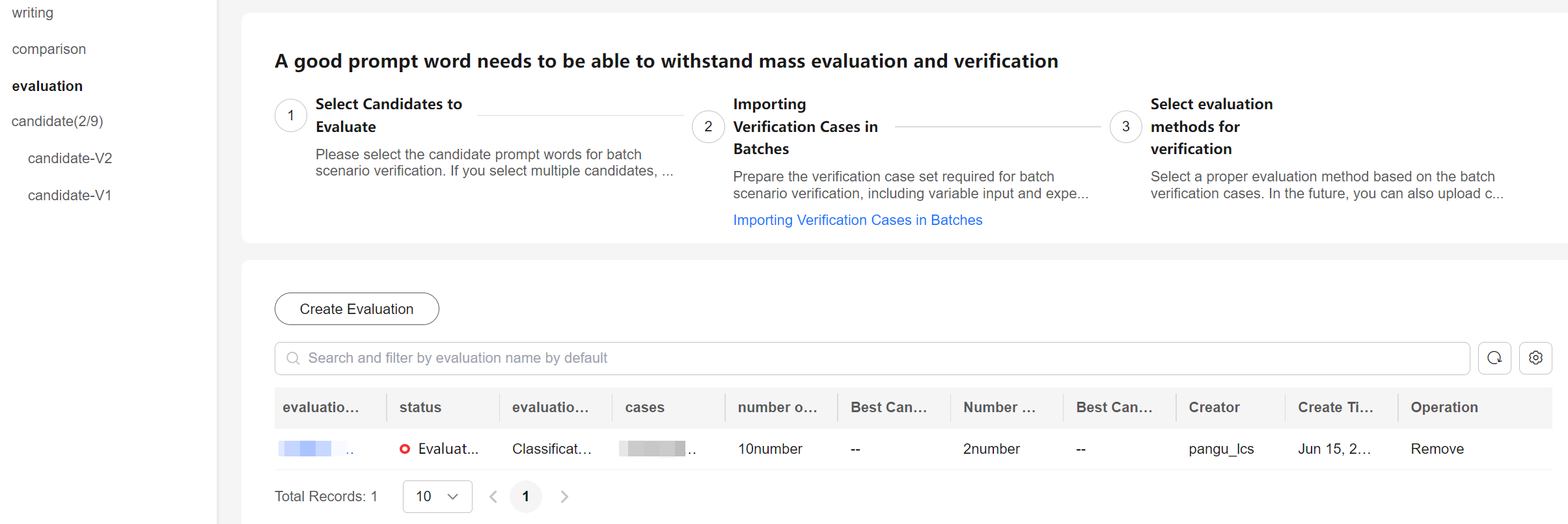 3. After the evaluation is complete, view the evaluation result of each data record.