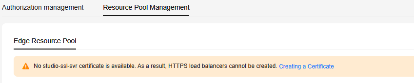 If no certificate is available on the Edge Resource Pools tab page, as shown in Figure 6, create one by referring to the following steps.