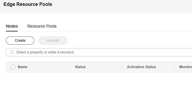 - In the navigation pane, choose Resource Management > Edge Node. On the Nodes tab page, click Create.