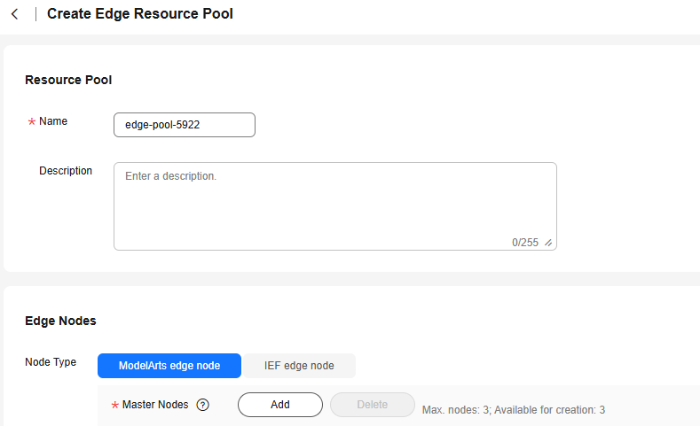- Creating an edge resource pool is complex. You are advised to contact Pangu customer service for assistance.