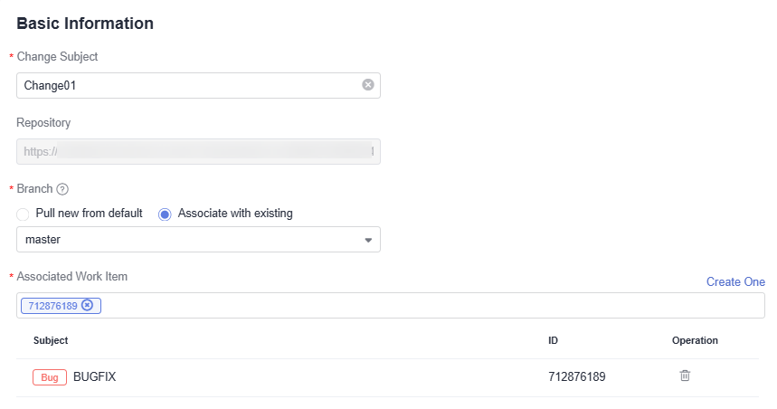 You can pull a new branch from the default branch or associate the change with an existing branch. After the change is released through the change-triggered pipeline, the code branch will be automatically merged to the default branch of the microservice.
