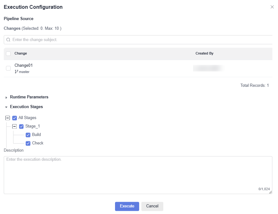 - Execution Stages: Select one or more jobs to execute. By default, all jobs are selected for execution.