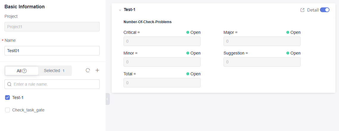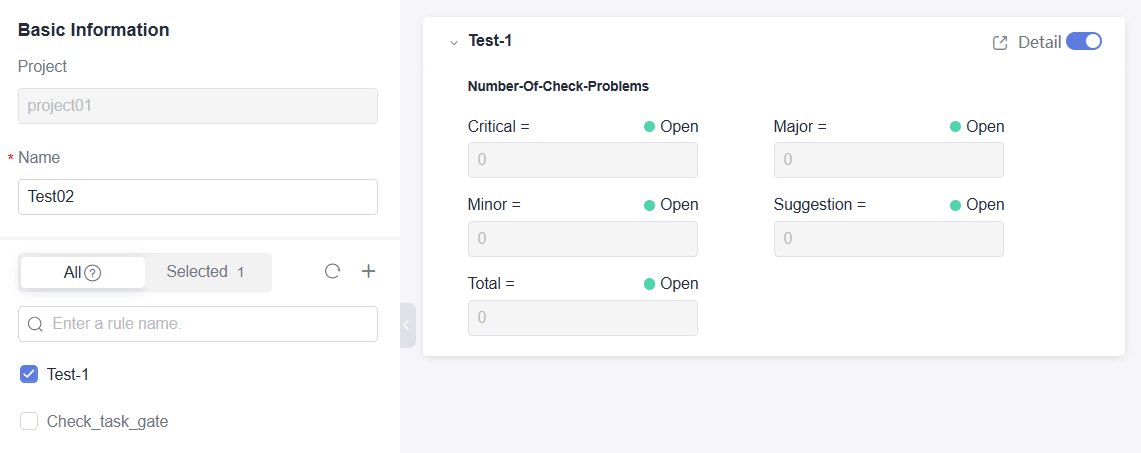 The selected rules will be displayed in the right part of the page. You can perform the following operations on each rule: