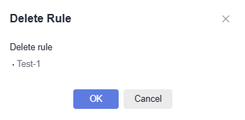 • On the rule list page, click in the Operation column to delete a rule. On the displayed dialog box, click OK to confirm the deletion.