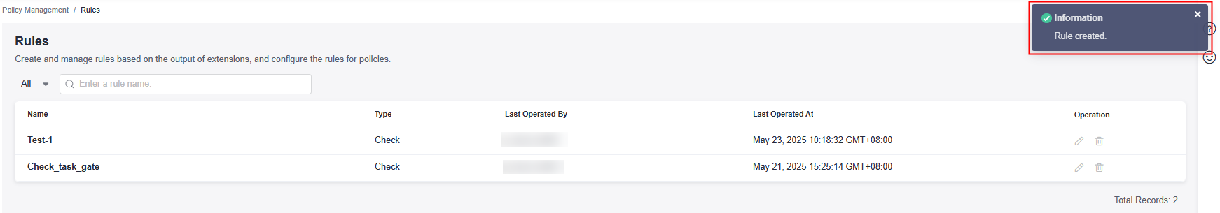5. Click Confirm. A message is displayed, indicating that the rule is created successfully. You can also perform the following operations in the rule list.