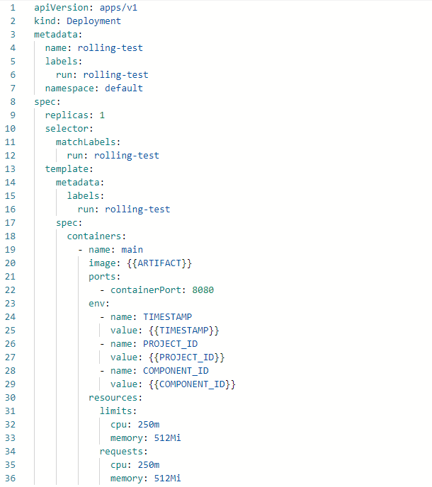 Artifact path. In the deployment YAML file, use {{ARTIFACT}} to reference the build artifacts.
